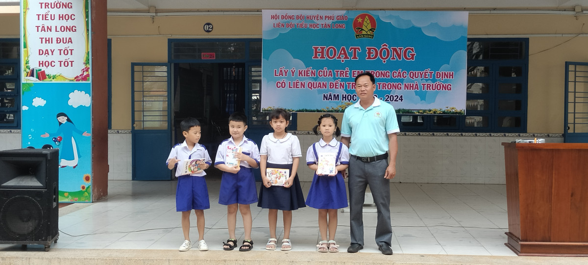 Chiều ngày 30/1/2024 trường TH Tân Long tổ chức tết sum vầy cho học sinh tại trường. Tham gia buổi hội gồm có BGH nhà trường, Tổn phụ trách đội,