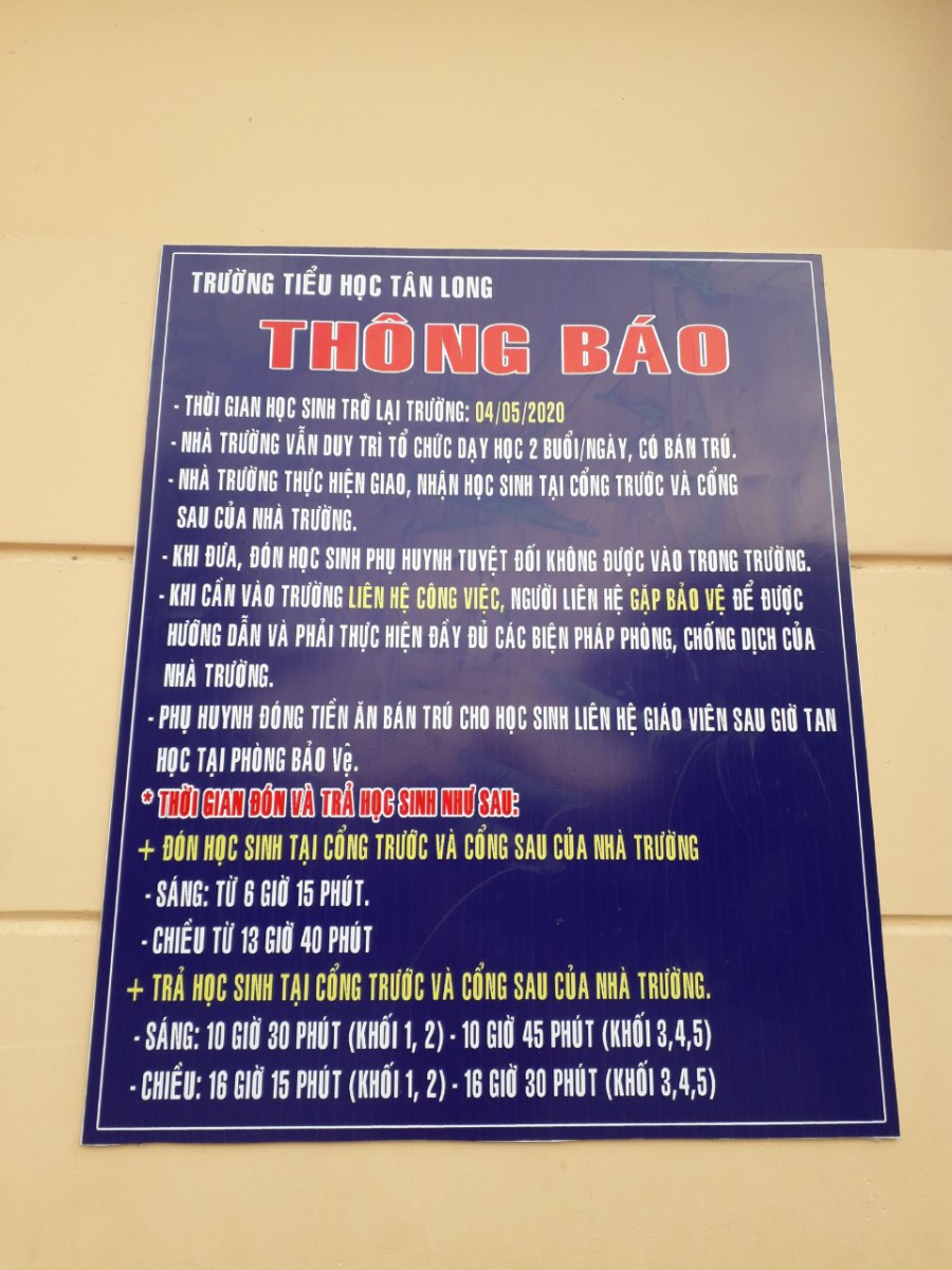 Hoc sinh tại trường Tiểu học Tân Long nghỉ học đến hết 29/2/2020 Lượt xem: 1