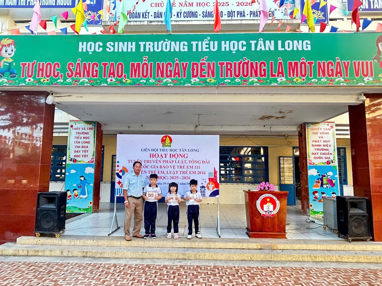 Nhằm nâng cao nhận thức pháp luật và kỹ năng tự bảo vệ cho học sinh, Sáng ngày 29/12/2025 Trường Tiểu học Tân Long đã tổ chức buổi tuyên truyền với chủ đề “Ngăn chặn các hành vi xâm phạm tính mạng, sức khỏe của người khác và phòng chống lừa đảo, bắt cóc học sinh qua mạng”.